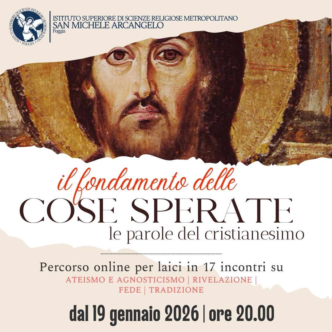 Quest’anno il corso, intitolato “Il fondamento delle cose sperate”, giunto alla sua terza edizione, inizierà il 19 gennaio e approfondirà le parole del cristianesimo in un percorso sviluppato in 4 moduli.